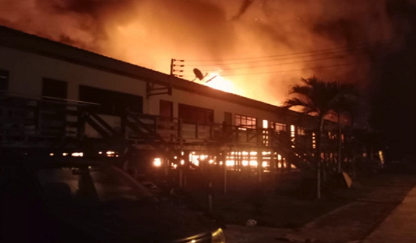 Kebakaran telah memusnahkan keseluruhan struktur bangunan rumah panjang jenis tidak kekal.