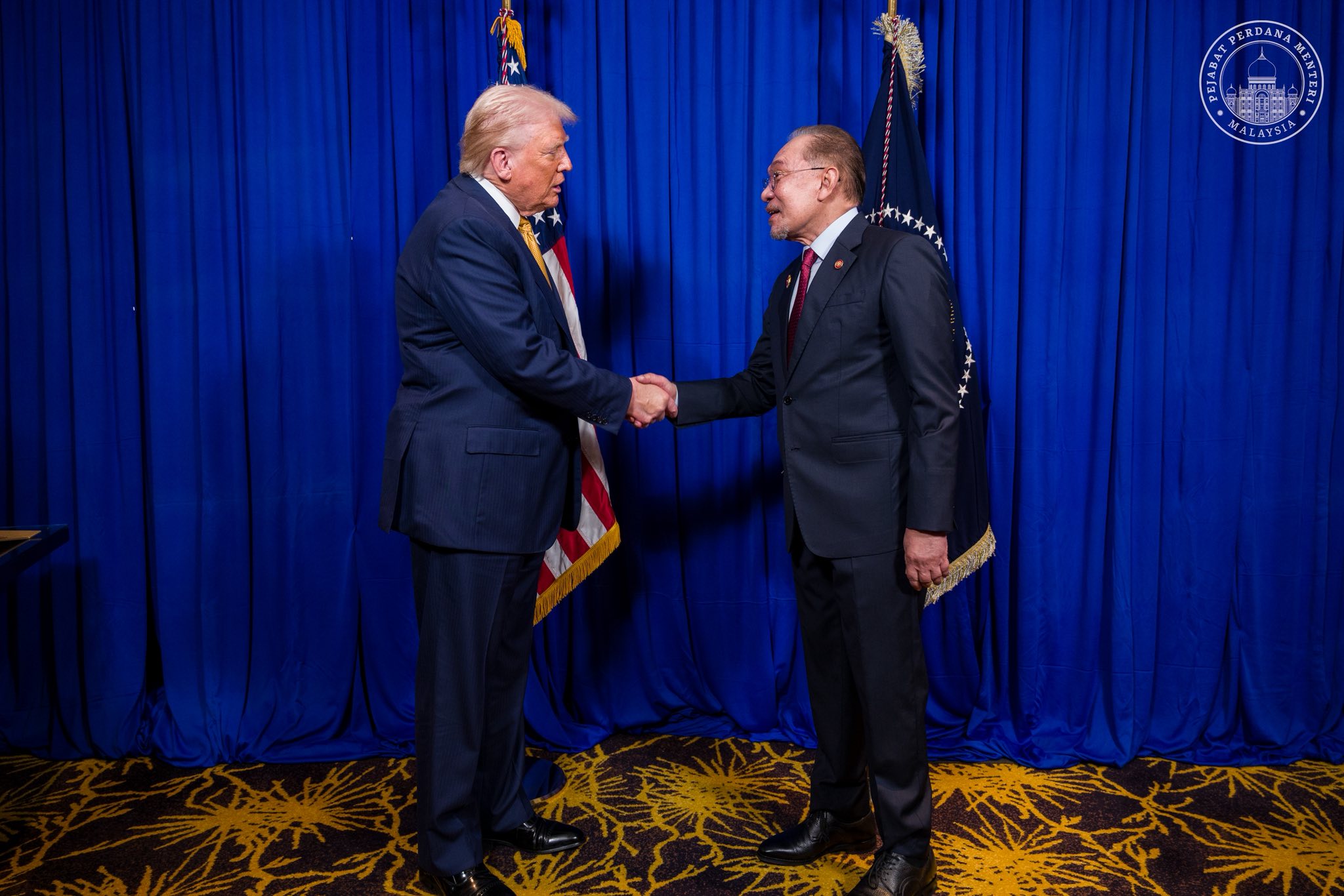 Pertemuan singkat penuh bermakna antara Presiden AS Donald Trump dan Perdana Menteri Datuk Seri Anwar Ibrahim hari ini/Foto Facebook PMO