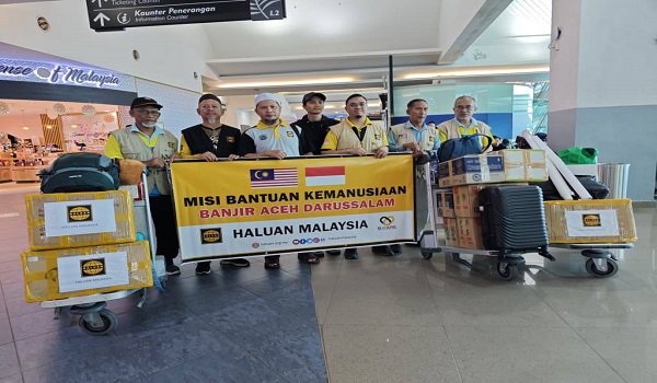 BAYAN LEPAS,8 Disember - Sukarelawan misi kemanusiaan Pertubuhan Himpunan Lepasan Institusi Pendidikan Malaysia (HALUAN) berlepas ke Aceh,Indonesia bagi melaksanakan Misi Kemanusiaan Banjir Aceh.