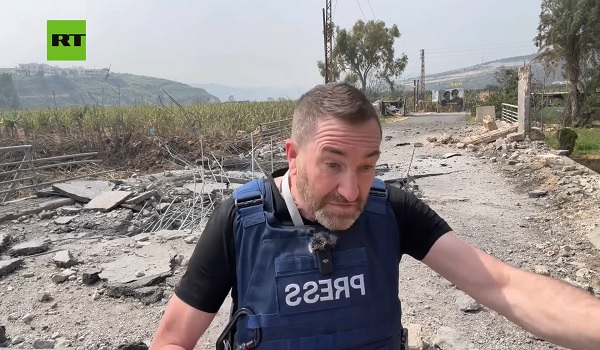 Wartawan RT mengelak peluru berpandu ketika membuat liputan /Foto RT