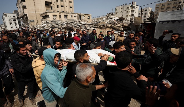 Rakyat Palestin mengusung jenazah yang terkorban diserang Zionis /Foto Reuters