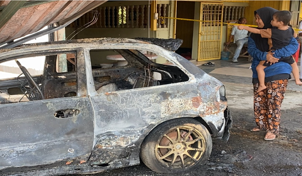 Dalam kejadian itu,mereka sekeluarga tinggal sehelai sepinggang dan kebakaran turut merosakkan sebuah kereta Proton Satria milik keluarga.