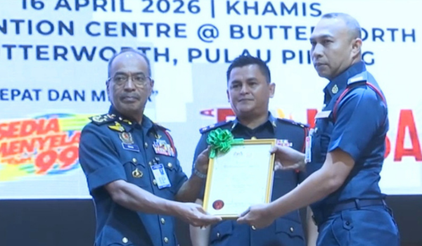 Datuk Ahmad Izram Osman (kiri) pada Majlis Anugerah Perkhidmatan Cemerlang (APC) 2025 JBPM Pulau Pinang hari ini