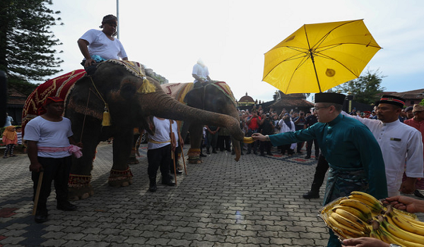 engku Mahkota Kelantan Tengku Muhammad Fakhry Petra berkenan memberi makan seekor gajah selepas merasmikan Festival Tekstil dan Warisan Kelantan 2025 di Istana Balai Besar,hari ini / BERNAMA