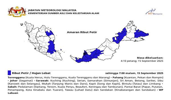 Dalam masa sama,beliau menyeru orang ramai di kawasan yang kini berada di bawah amaran ribut petir oleh Jabatan Meteorologi Malaysia (MET Malaysia) khususnya Sabah,Sarawak,Terengganu,Pahang,Johor dan Labuan agar sentiasa berwaspada terhadap ancaman hujan lebat,ribut petir dan angin kencang.