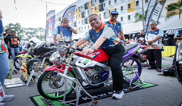 Menteri Besar Perak,Datuk Seri Saarani Mohamad bergambar ketika melihat pameran motosikal retro selepas merasmikan Majlis Kemuncak Karnival Mesra Anak Muda (KAMU) 2025 di Stadium Indera Mulia hari ini/ Foto BERNAMA