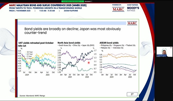 Ketua Ahli Ekonomi MARC Ratings Bhd,Dr Ray Choy ketika membentangkan kerja dalam persidangan Bon dan Sukuk Malaysia MARC 2025 secara maya/RTM
