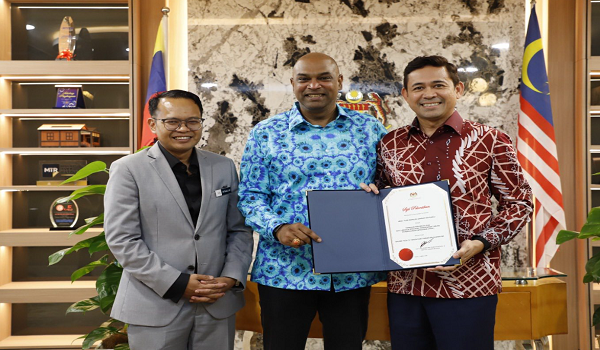 Datuk Seri R. Ramanan (tengah) bersama Ramelle Ashram Ramli (kanan) dan Ahsim Jamat